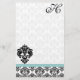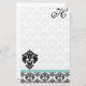 Aqua Blue Damask Monogram Gerecycelt Papier