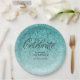 Aqua Blue Glitzer Celebrate Personalisiert Pappteller