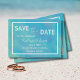 Ein abstraktes Aqua-Blue-Ozean-Design mit individualisierbarem Text, perfekt für Ihre Hochzeit am Strand.