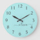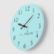 Aqua Blue Teal Modern Script Girly Monogram Name Große Wanduhr