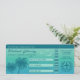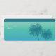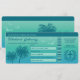 Desteis Design eines Imitats Boarding Pass Aussehen mit tropischen aqua blauen Palmen Silhouetten, drei fliegenden Vogelarten Silhouetten und einem Flugzeug Kranz. Der Hintergrund ist ein wunderschöner, blau bis aquamarin grün Farbverlauf, der dem Design einen tropischen Sommer-Look verleiht. Es gibt auch mehrere personalisierbare Beispieltexte für die Details des betreffenden Ereignisses. Dieses Design wurde entworfen, um das Aussehen eines Boardings-Passes nachzuahmen, sodass es für jedes Ziel-Ereignis ideal ist.