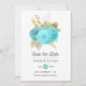Aqua Blue und Gold Floral Wedding Save The Date