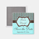 Dieses Aqua blau, braun und weiß gestreift speichern Sie den Datums-Magneten passt zu der Hochzeitseinladung unten gezeigt. Der Text ist alle anpassbar.