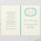 Cérémonie de mariage et programme plié avec des initiales comportant un cadre bleu aqua en feuille et du texte en gris sur ivoire. Ce modèle moderne, fleuri, élégant et élégant est une partie design entièrement personnalisable d'un ensemble mariage parfait pour votre mariage d'été. Il faut le plier au centre. Choisissez seulement ce type de papier-valeur comme il se plie bien.