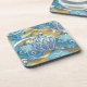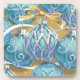 Exquisit illustriertes Weihnachtskugelmuster mit weißen Bändern, die durch Konfetti fließen, mit goldenen Bändern und goldfarbenem Hintergrund verziert. Von Surface Muster Designer L Diane Johnson.