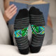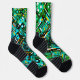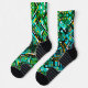 Grafisches Design mit modernem Aqua und gelbem Kubismus für modische Socken. Das Design in modernen Farben und in zeitgenössischen Grafiken mit geometrischen Formen und lebhaften Farben kontrastiert.