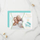 Carton de save the date à thème plage aqua et or avec coquillage et texte doré.