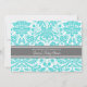 Invitations personnalisées de douche bébé dans élégant et moderne bleu ciel turquoise clair, gris et blanc classique et vintage motif damassé floral. Personnalisable avec votre texte, contactez-nous pour demander un changement de couleur.