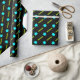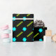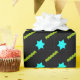 MACH! Geschenkpapier für jüdische Feiertage und Ereignisse, die NICHT blau und weiß! Episches neues Design von sehr hellen, aqua 6-spitzen Sternen mit Trailing neon grün gewellten Bänder hinter und Set auf einem schwarzen Hintergrund. Für Bat Mitzvahs, Geburtstage, Hanukkah, Duschen & mehr.