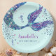Fügen Sie dem besonderen Tag Ihrer kleinen Meerjungfrau eine Touch der Verzauberung hinzu, mit unseren personalisierbaren Geburtstagspapieren-Tellern zum Mermaid-Thema! Diese Teller verfügen über einen atemberaubenden Aquahintergrund mit einem stilvollen blau-lila Glitzer-Schwanz und Seepferden, die Ihre Gäste zu einem Unterwasserparadies bringen. Diese Teller sind vollständig anpassbar - einfach den Namen und das Alter Ihres Kindes hinzufügen, um seinen Geburtstag perfekt zu gestalten.