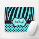 Aqua, Schwarz-, weißerzebra-Streifen u. Punkte Mousepad