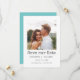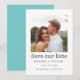 Einfaches elegantes Foto Save the Date mit Ihrem besten Verlobung Foto auf weißem Hintergrund. Die Karte ist in türkisfarbenem Aquablau gehalten und passt sich perfekt an Ihre Hochzeit oder Ihr Foto an. Personalisieren Sie mit Ihren Namen, Hochzeitsdatum und Ort.