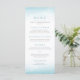 Aqua Tides | Wasserfarbenes Hochzeitmenü. Dieses moderne, schlichte Motiv mit zarten, pastellblauen Kurven umrahmt klassisch, mit doppeltem Abstand und kursiv kalligrafischem Schriftart.