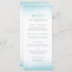 Aqua Tides | Menu Mariage Aquarelle. Ce thème moderne et simple avec des courbes délicates et pastel encadre des lettrages de blocs classiques à deux interlignes et des polices calligraphiques cursives.
