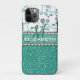 Aqua-Türkis-Monogramm-Blumen-Glitzer-Muster Case-Mate iPhone Hülle