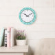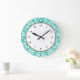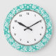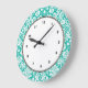 Aqua Turquoise Teal damask pattern Große Wanduhr
