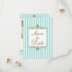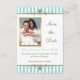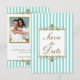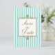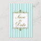 Aqua, White Stripes, Gold Scroll Save the Date Kar