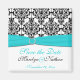 Aqua, White und Black Damask Wedding Fvor Magnet