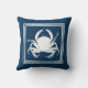 Aquatisches Design mit Krabbendekoration in gestreiften Quadraten auf blauem Hintergrund