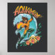 Aquaman und das verlorene Königreich | Karo aus Aquaman mit seinem Trident, der bei Sonnenuntergang aus dem Meer aufsteigt, mit seinem Namen und seiner Ikone mit Blumenakzent.