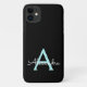 Aquamarine Aqua Blue und Black Monogram Fügen Sie Ihren eigenen Namen Phone Case. Das macht den perfekten 16 Geburtstag, Hochzeit, Brautparty, Jubiläum, Babydusche oder Junggeselinnen-Abschied Geschenk für jemanden, der Lieben glamourösen Luxus und schicke Stile.