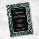 Aquamarin Black and Silver Leopard Glam 50. Geburt Einladung