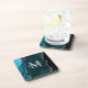 Dieser Untersetzer besticht durch einen eleganten und glamourösen Marmorhintergrund mit geode gemstone Details und Imitaten silbernen Glitzer Akzenten. Das Monogramm kombiniert handgeschriebene Skripte mit modernen serifenlosen Schriftart für ein elegantes und raffiniertes Aussehen. Dies wird das ideale Geschenk, da es mit einem Namen und Initial angepasst werden kann. Die tiefen aquamarinen Blautöne machen es zu einem idealen Ort für Herbst und Winter.