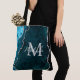 Diese Tasche ist mit einem eleganten und glamourösen Marmorhintergrund mit geode gemstone Details und Imitaten silbernen Glitzer Akzente. Das Monogramm kombiniert handgeschriebene Skripte mit modernen serifenlosen Schriftart für ein elegantes und raffiniertes Aussehen. Dies wird das ideale Geschenk, da es mit einem Namen und Initial angepasst werden kann. Die tiefen aquamarinen Blautöne machen es zu einem idealen Ort für Herbst und Winter.