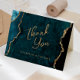Diese trendige moderne Hochzeitskarte mit einem aquamarinen blauen Aquarellhintergrund besticht durch den vergoldeten Glitzer der Imitate. Der anpassbare Text enthält die Worte "Danke" in goldfarbenem Schriftsatz. Fügen Sie die Namen der Braut und des Bräutigams unten hinzu.