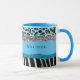Diese phantastische individuelle Tasse ist ein großartiges Geschenk für sie. Mit aquamarinem, blauen Glitzer und blauen Leopardendrucken in einem super femininen Design.