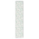 Hier ist ein hübscher Holiday-Tischläufer, der ein bohenhaftes Muster aus Kiefernbäumen, Blätter und Beeren in aquamarinen, roten, rosa und goldenen Tönen aufweist. Das Muster wird auf einem hellweißen Hintergrund wiederholt. Festlich und elegant für Ihre Weihnachtsdekoration.