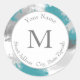 Aquamarin-graue Abstrakte Pinselstriche Runder Aufkleber