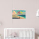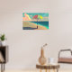 Aquamarin- und Peach-Strand, Berg und Schirm Poster