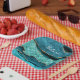 Aquamarine Blue-Gold-Marmor-Individuelle Name-Papi Pappteller