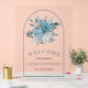 Das durchsichtige Acrylzeichen für Hochzeiten zeigt wunderschöne aquamarine blaue Blumen und ein florales botanisches Design mit einem eleganten Bogen in der gleichen Farbe. Der Rahmen bietet eine schöne Anordnung von Dalias, Rose, Blattwerk, Blätter und Pampas-Gras, die alle in verschiedenen Blautönen gehalten sind. Dieses einzigartige Hochzeitszeichen ist eine perfekte Ergänzung zu jeder botanisch-thematischen Hochzeit, die eine Touch von Eleganz und Naturschönheit zu der Veranstaltung hinzufügt.