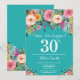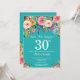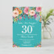 Aquamarine Blumenüberraschung 30. Geburtstag Einladung für Frauen. Aquarell Floral Blume. Aquamarines türkisfarbenes Aqua-Hinterland. Rosa, gelb, orange, Lila Blume. Erwachsener Geburtstag. 13. 15. 16. 18. 20. 21. 30. 40. 50. 60. 70. 80. 90. 100. jedes Alter.