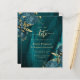 Diese elegante Hochzeitskarte Save the Date mit aquamarin blauen Blumenstrauß-Set mit goldenen Imitate-Folie in zwei Ecken, auf einem Hintergrund Bild von aquamarinen Aquarellfarben. Der anpassbare Text kombiniert goldfarbene Serif-, Kursivschrift- und Handschriftzeichen-Schriftart. Auf der Rückseite ist ein aquamarines Blau- und Goldblütendesign und ein passendes Age- und Blütendesign.