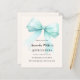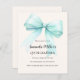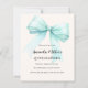 Ein zartes beige, cremefarbener Hintergrund, mit einem großen, aquamarinen, grünen Bogen dekoriert. Personalisieren und fügen Sie einen Namen und Party-Details hinzu. 1 Blatt = 1 Einladung mit Druckkante bis Kante.