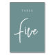 Einfache und schicke Tischnummer-Karten in staubigen aquamarinen und weißen Farbtönen geben bei Ihrer Hochzeit oder Veranstaltung eine elegante Note. Das Design bietet "table [number]" in einem spannenden Mix aus klassischen Serifen und handgeschriebenen Skripten. Design wiederholt sich auf beiden Seiten. Einzelne nummerierte Karten werden separat verkauft; bestellen Sie jede Tischnummer einzeln aus unserer Sammlung.