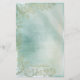 Aquamariner Zierrahmen auf links Seite mit dunkleren aquamarinen Rechteck-Rahmen. Weiße Linien und goldene Vorlage für Monogrammnamen unten.