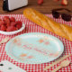 Aquamarine Pfirsich- und rosafarbene Papierplatte Pappteller