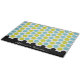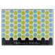 Dieses dekorative Glasschneidenbrett kennzeichnet ein aquamarines und Limones grünes Polkapunktmuster mit einer Reihe der schwarzen Polkapunkte und der schwarzen Fahne über der Unterseite. Kundengerechter Text erlaubt Ihnen, einen Namen zu addieren.