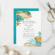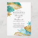 Aquamarin - türkisfarbene und goldfarbene tropische Foliage Hochzeitskarten, die schnell und einfach auf Ihre Veranstaltungsspezifikationen zugeschnitten sind.