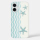 Eine lustige abstrakte Handybox mit aquamarinen Linien am Strand, die Surfen mit einer Streuung von Seestern entlang der Surfkante darstellen. Entwickelt für iPhones.