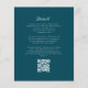 Dieses elegante Hochzeitseinladungs-Design zeichnet sich durch ein aquamarines, blaues Skript-Monogramm aus, das durch einen Botanischen Kranz der Linie Kunst umgeben ist. Die Namen erscheinen in aquamarinem Skript, mit der Erholung des Textes im klassischen Serif-Schriftart. Die Rückseite bietet Platz für Hochzeitsdetails auf einem soliden aquamarinen blauen Hintergrund, zusammen mit einem QR-Code können Gäste scannen, um Ihre Website und UAWG zu besuchen.