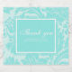 Aquamariner Damast danke Ihnen Karte. Die elegante Kollektion eignet sich hervorragend für eine Hochzeitsfeier, ein Brautparty, eine Babydusche oder eine Feier im Landhausstil. Die gesamte Auflistung ist anpassbar. Genießen Sie Ihre Feier, Beifall!