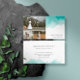 Eine flache Visitenkarte für einen beruflichen Fotografen, wo Sie Ihre Arbeit in einer Collage aus Foto mit Platz für drei Ihrer Fotos präsentieren können. Fügen Sie Ihren Namen und Ihre Spezialität oder Titel oder Service auf dem Cover unter einem Aquarellpräch in aquamarin mit Imitaten vergoldeten goldenen Spatter. Fügen Sie Ihre Kontaktinformationen auf der Rückseite ein. Eine elegante, minimalistische Visitenkarte, ideal für Hochzeitsfotografen.