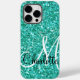 Aquamariner funkelnder Glitzer mit Monogramm Case-Mate iPhone 14 Pro Max Hülle