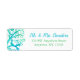 Moderner aquamariner und grüner Baum des Lebens Bat Mitzvah Rücksendeadressen-Aufkleber. Dieses einzigartige Design besticht durch einen Wasserfarbenwirbelbaum, Blume und Vögel.