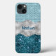 Aquamariner, gürtelgrüner Glitzer silber Monogramm Case-Mate iPhone Hülle